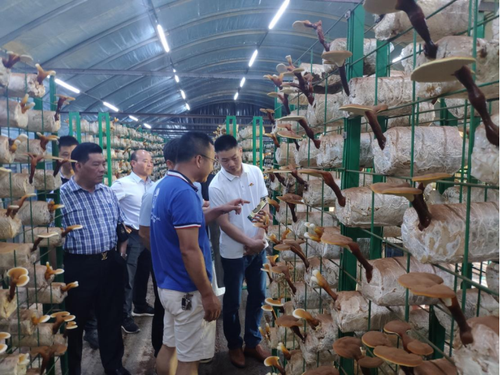 最后,來到湖南村菇生物科技有限公司,在該公司總經(jīng)理劉志華的帶領(lǐng)下,先后參觀了該公司的靈芝、竹蓀、黑皮雞樅等菌類大棚栽培基地,竹蓀、黑皮雞樅等菌類林下栽培基地。據(jù)了解,劉志華于2012年、2016年分別遠赴日本、芬蘭學(xué)習(xí)食用菌栽培技術(shù),并在婁底市創(chuàng)立國內(nèi)首家灰樹花工廠化生產(chǎn)示范基地。2020年6月,他抱著以技術(shù)回報家鄉(xiāng),以食用菌產(chǎn)業(yè)助力鄉(xiāng)村振興的想法,回家鄉(xiāng)創(chuàng)立湖南灰菇娘生物科技有限公司。2021年10月,在市僑聯(lián)的引領(lǐng)下,在益陽市僑商會的大力支持下,成立了湖南村菇生物科技有限公司,由劉志華擔(dān)任該公司總經(jīng)理。
